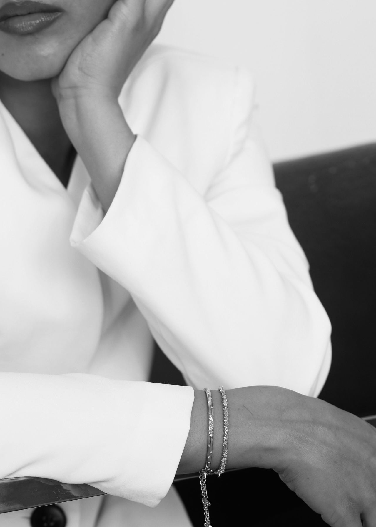 A silver bracelet set entirely with fine silver beads. giving it a unique luster. It features a touch of natural stones that add to its uniqueness and elegance.