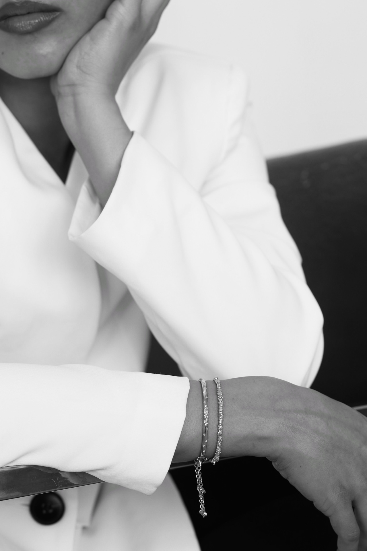 سوار من الفضة مرصع بالكامل بحبيبات الفضة الدقيقة، مما يمنحه بريقًا فريدًا، ويضم لمسة من الأحجار الطبيعية تضيف له تميزًا وأناقة.
