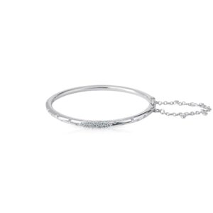 سوار من الفضة مرصع باحجار الموزنايت و حبيبات الفضة الدقيقة، مما يمنحه بريقًا فريدًا، ويضم لمسة من الأحجار الطبيعية تضيف له تميزًا وأناقة.